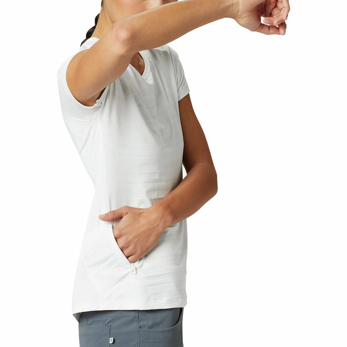 Rather than vegging in front of the TV, pull on the Mountain Hardwear Women’s Mighty Stripe Shirt and hit the trail for a hike. Made from a performance stretch fabric, this top wicks sweat to keep you cool and dry in the afternoon sun. The raglan sleeve design enhances mobility and prevents chafing when you’re wearing a pack.