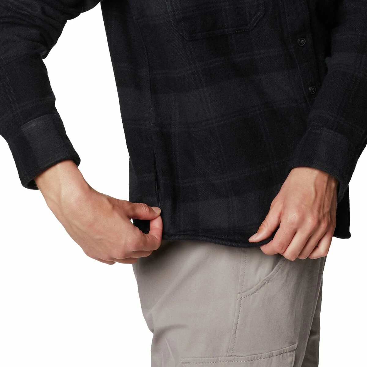 - Buttoned cuffs let you roll up your sleeves when the fire is roaring